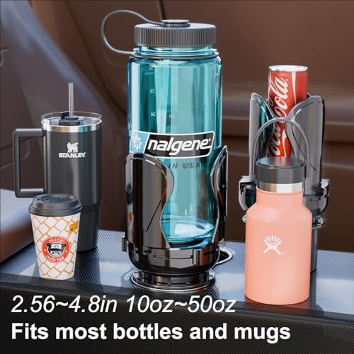 Versatile Compatibility: Our upgraded cup holder expander for the car is designed to accommodate a wide range of drinks, bottles, and mugs. It is compatible with various sizes, including popular brands like Yeti Rambler (14-50oz), Hydro Flasks (32/40oz), and most coffee mugs. Whether you have a 12 oz or a 64 oz container, our cup holder adapter can securely hold them in place.